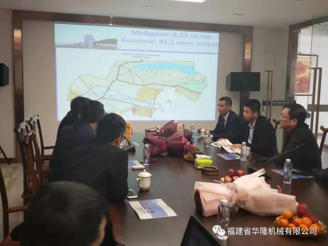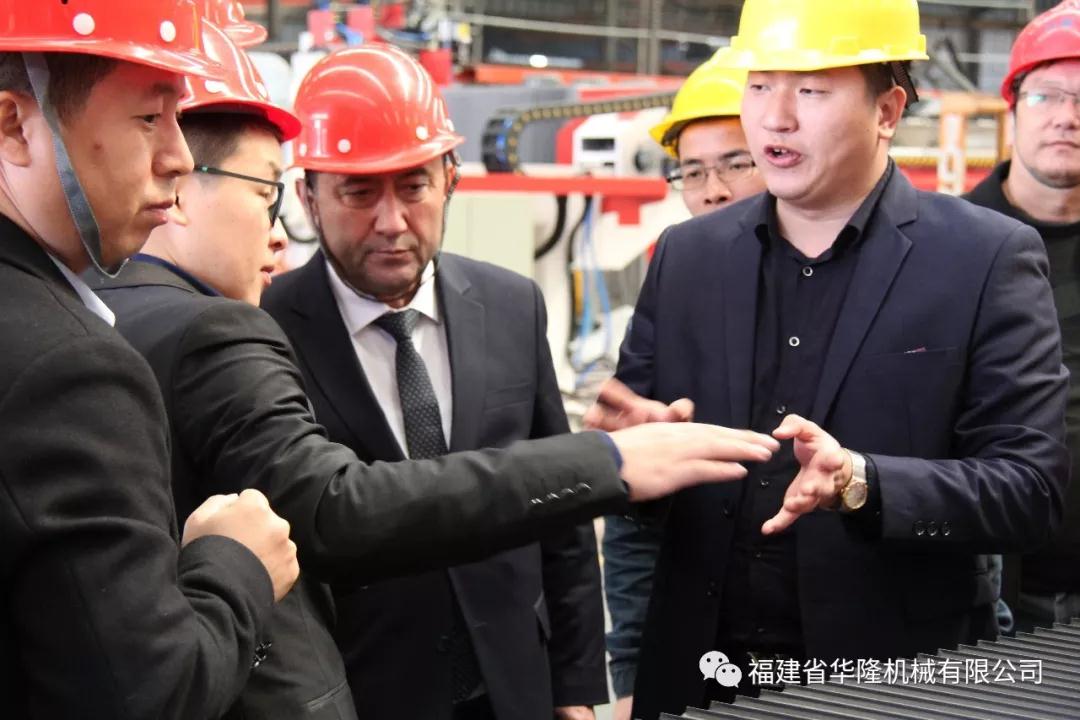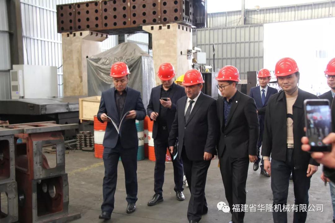 圖為烏茲別克斯坦納沃伊州市長(zhǎng)代表團(tuán)參觀華隆機(jī)械生產(chǎn)車間