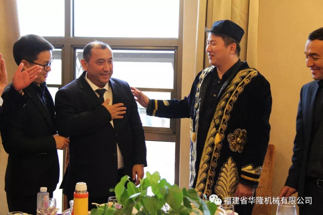 在兩方參觀完生產(chǎn)車間后,華隆機(jī)械行地主之誼,熱誠(chéng)得邀請(qǐng)烏方納沃伊州代表團(tuán)到冠豪大酒店用餐。烏方納沃伊州市長(zhǎng)也表示出了滿滿的誠(chéng)意,拿出烏茲別克斯坦傳統(tǒng)圓餅形面包與我們分享。并為華隆機(jī)械銷售部經(jīng)理披上象征烏茲別克斯坦最高榮譽(yù)的傳統(tǒng)服飾。