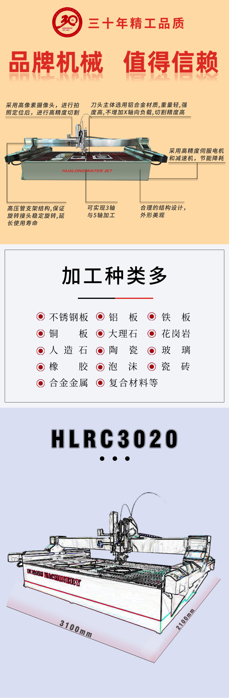 HLWJ2015/3020/4020五軸數(shù)控水刀切割機(jī)