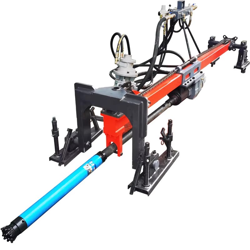 這臺由優(yōu)質(zhì)壓縮空氣馬達(dá)驅(qū)動的潛孔鉆機(jī),用于在采石過程中鉆鑿大直徑的水平、垂直和傾斜孔洞,以便安裝金剛石鉆桿以進(jìn)行采石作業(yè)。它是用于采石的金剛石鋸機(jī)的必備輔助設(shè)備。
